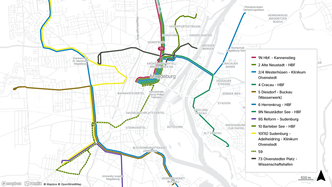 - Fährt zwischen Herrenkrug und Hauptbahnhof/ Willy-Brandt-Platz
