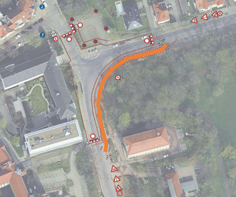 - Der westliche Gehweg im Editharing ist gesperrt. Fußgänger müssen den östlichen Gehweg nutzen.