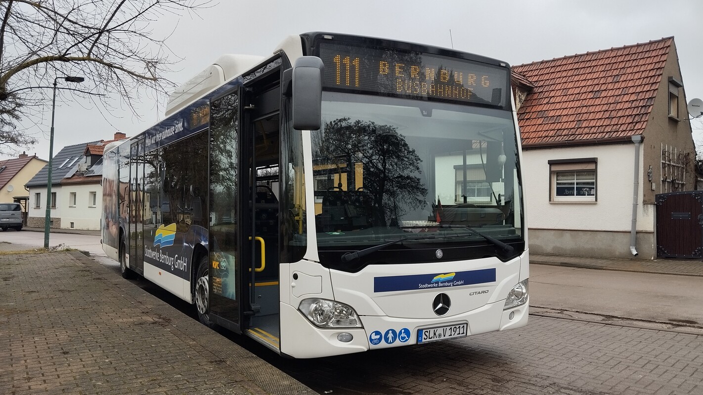 Wegen Straßenbauarbeiten können ab Montag, den 16.02., Betriebsbeginn, die Bernburger Haltestellen Nienburger Straße, Marienkirche, Breite Straße, Kaiplatz und Tiergarten nur noch eingeschränkt bedient werden. Durch die Linien 116 (Bernburg – Plötzkau – Alsleben – Könnern) und 158 (Bernburg – Staßfurt) werden ersatzweise die Haltestellen Platz der Jugend und Winzergasse bedient. Die Linien 110 (Bernburg, Busbahnhof – Bernburg West), 111 (Bernburg – Güsten – Staßfurt) sowie einige Fahrten der Linie 115 halten ersatzweise am Platz der Jugend und in der Nicolaistraße. Ausgewählte Schultagsfahrten der Linien 111 und 116 sind von den Änderungen nicht betroffen.